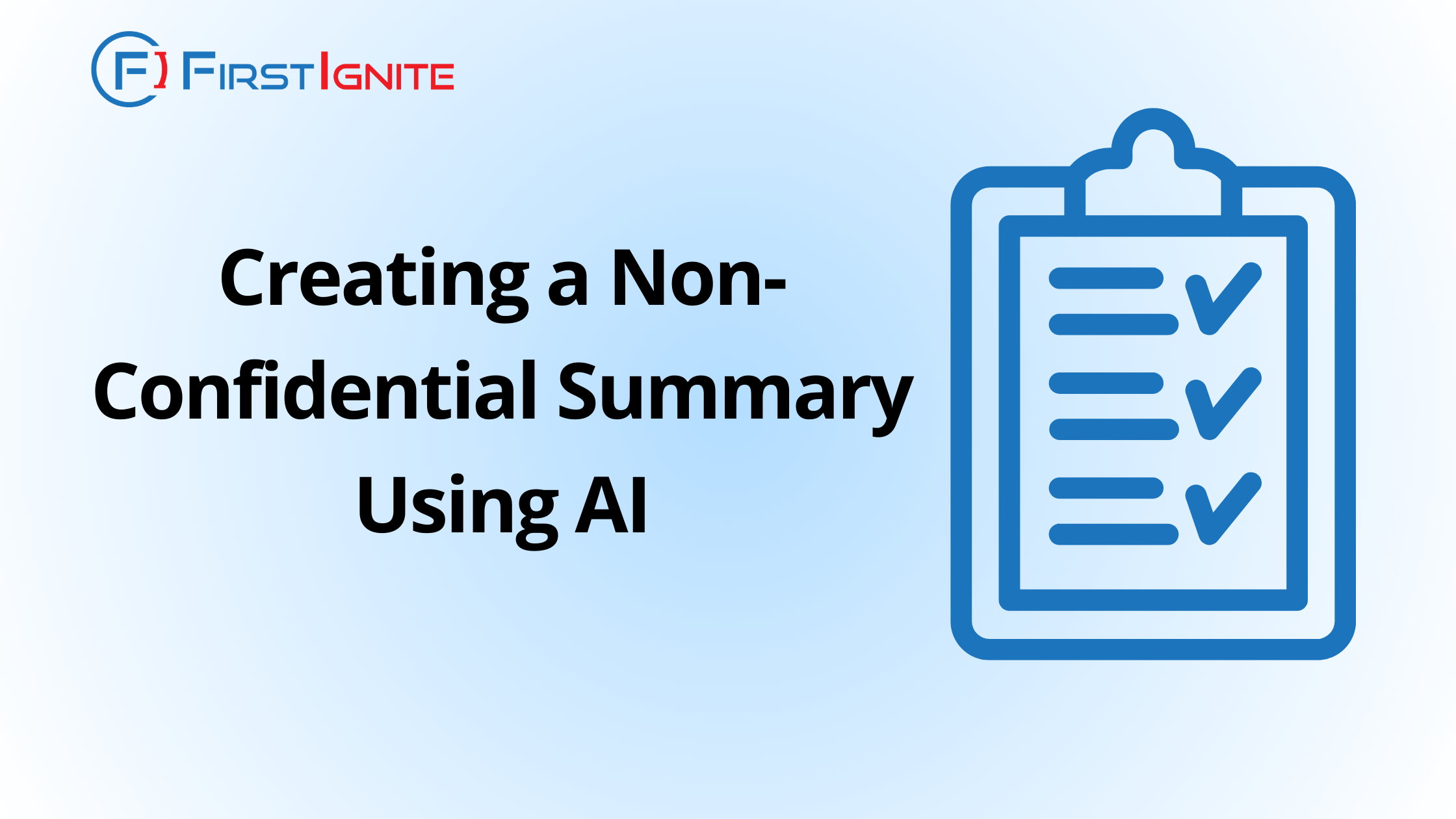 To get started, all you have to do is copy and paste the content of a scientific document, such as a patent, brief, or journal article, into the FirstIgnite AI summarization tool. Then, by clicking the “Get Summary” button, FirstIgnite will generate a summary in real-time, which will include a non-confidential overview of the technology’s features, advantages, and potential applications in the market. This summary can be modified and saved as a PDF, HTML, or Text file.